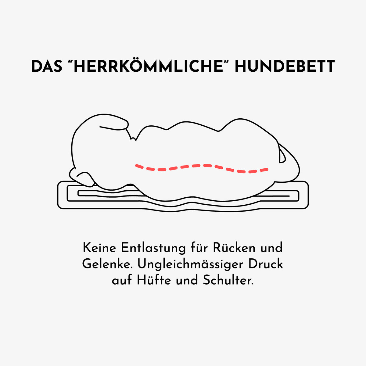 Die Wirbelsäule bleibt gerade, Gelenke schweben schwerelos. Egal ob zur Vorbeugung bei jungen Hunden oder Linderung bei Senioren: Das ist der gesunde Tiefschlaf, den Experten empfehlen – Designed in Switzerland.